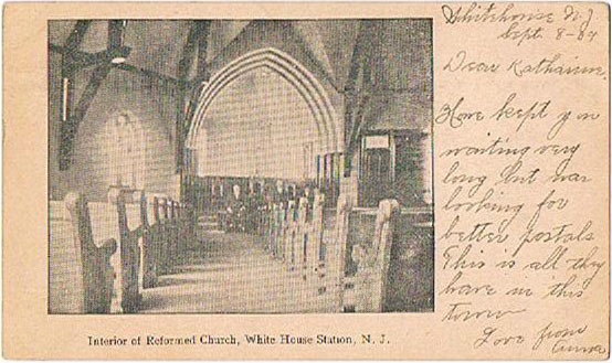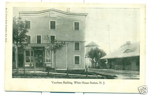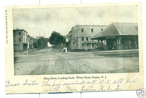White House Station ![]() Station 1906 Listed on the National Register of Historic Places, this 1892 building was a former NJ Central Railroad Station. Designed in the H.H. Richardson style by Bradford Gilbert, it is characterized by heavy, rough-cut stone exterior, broad roof planes, and arched entryways. Painstakingly restored by the community in 1981, it now serves as the Readington Township Public Library. A visit to the "ladies waiting room" is a must! ![]() R.R. Station at White House Station, N.J. ![]() ![]() Public Stage ![]() ![]() Main St., Whitehouse Station, NJ June 5, 1907 ![]() Whitehouse Station 1905 ![]() 1915 The Rockaway Valley Railway, also known as the New Jersey & Pennsylvania Railroad, had a short life, closing down freight and passenger operations in 1914. It ran from White House to Morristown via Oldwick, Pottersville, Peapack, Ralston, Menham, Brookside & Washington Valley. The railroad had its own station at White House (right side). The Central Railroad of New Jersey, with which the NY&P connected, had a separate freight station (left) and a stone passenger station (left foreground). ![]() Birdseye view Pickell's Mt., Whitehouse Station 1905 ![]() Post Office 1906 ![]() 1910 ![]() Voorhees Building ![]() Voorhees Building colorized ![]() Voorhees Building ![]() Main St. looking North ![]() Main St. looking South ![]() Main St. looking South ![]() View of Town Looking North 1907-1912 ![]() South Main St. 1915 ![]() 1915 ![]() North Main St. 1927 ![]() Main St. 1947 ![]() Main St. 1950s ![]() 1907 ![]() Union Hotel V.F. Roche, Prop. ![]() Church ![]() Methodist Church 1906 ![]() Reformed Church 1908 ![]() Refromed Church interior 1905 Misc. ![]() Mountain View Whitehouse ![]() Post Office and General Store of John Lane ![]() Ryman Farm 1905 Became the Ryland Inn ![]() 1906 ![]() ![]() ![]() The Ryland Inn, built in Readington on the New Jersey Turnpike, which was chartered in 1806 and familiarly called “the old highway” from New Brunswick to Easton, was owned by Col. David Sanderson around 1850. Part of a collection of buildings for a blacksmith, farrier, and stables that served early stage coaches, the inn was purchased in 1905 by Kencyl Llwelyn Ryman and ultimately passed to his granddaughter, Phyllis Black, who ran a notable restaurant there for many years. The building, sited on a large farm complex, is described in part in the County’s 1979 Sites of Historic Interest as a two-and-a-half story Victorian Gothic structure with smaller one-and-a-half story wings. |
