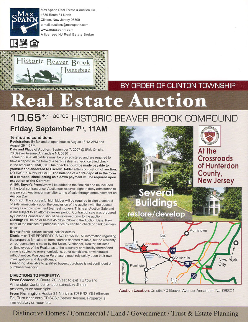 Beaver Brook Homestead during Clinton Township's ownership Auction brochure for Beaver Brook Homestead September 7th, 2007Click