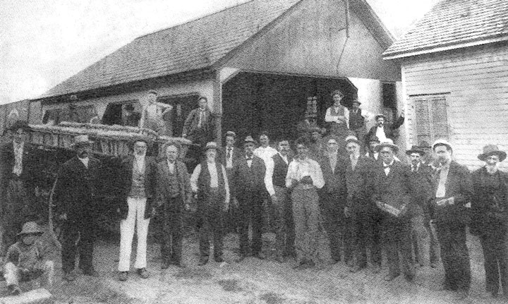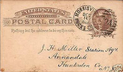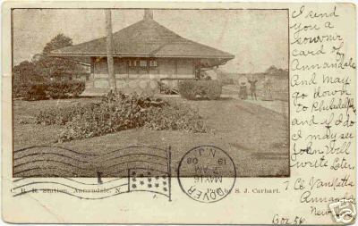 Postmarked Dec. 14, 1885 Sent from Morrisville in Bucks Co PA to J.H. Miller Station Agent in Annandale c. 1852 Renovations were made to the depot in 1870. The original structure above was demolished in the early 20th Century and was replaced with the smaller structure below completed by June 1900. The station below was designed by architect Bradford Lee Gilbert and erected between 1899-1900. See page 82 for Annandale Bradford Lee Gilbert Sketchbook (PDF) ![]() There was a explosion at this station in 1901. The station agent was burned by acetylene gas while refilling the generator. Another explosion was in January 1903. ![]() Annandale Peach Exchange c. 1899 This photo is the only known photo of the Annandale Peach Exchange. It shows a wagon-load of peaches and many of the local farmers and residents, including some young boys, being where the action was. The Annandale Peach Exchange was located across from Farrington Lumber (Main and East Streets in Annandale).