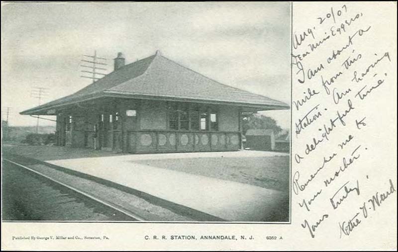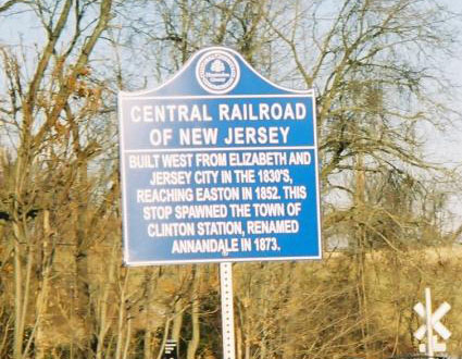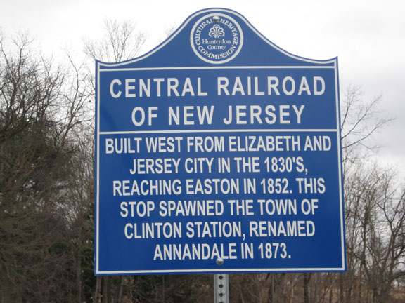 Central Railroad of New Jersey - Built west from Elizabeth and Jersey City in the 1830s, reaching Easton in 1852. This stop spawned the town of Clinton Station, renamed Annandale in 1873.